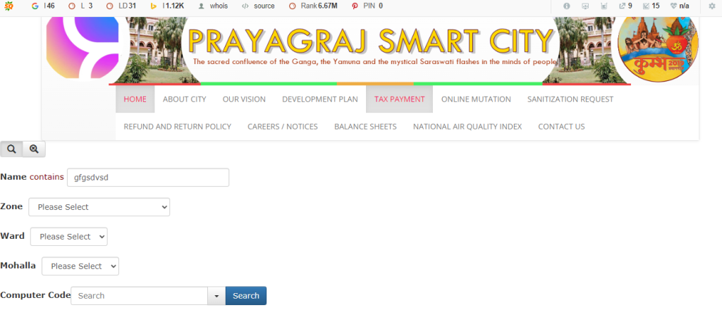 Method 1: Visit the official website (https://www.prayagrajsmartcity.org/) and go to “Tax Payments” section. Enter details like name, ward, zone, etc. to search for your property tax and make a payment.