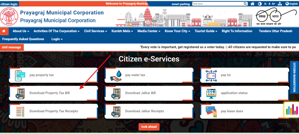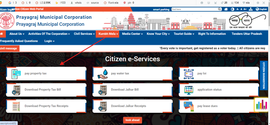 Method 2: Visit the Prayagraj Municipal Corporation website (https://prayagraj.nic.in/public-utility/prayagraj-nagar-nigam/) and select the “Property Tax” option. Enter your property tax number (or old property tax number) to view your tax details and make a payment