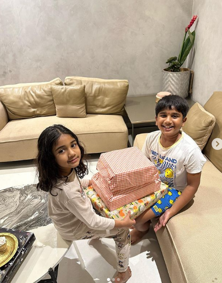 Allu Arjun’s children, Ayaan and Arha, each have their own distinct bedrooms adorned with soothing pastel colors. Ayaan’s room blends blue and white walls adorned with colorful decorations, while Arha’s room features a charming pink and white color scheme. The video showcases how toys and books are neatly arranged in white cabinets and complemented by the white bed frame, offering a glimpse into their personalized and delightful living spaces.