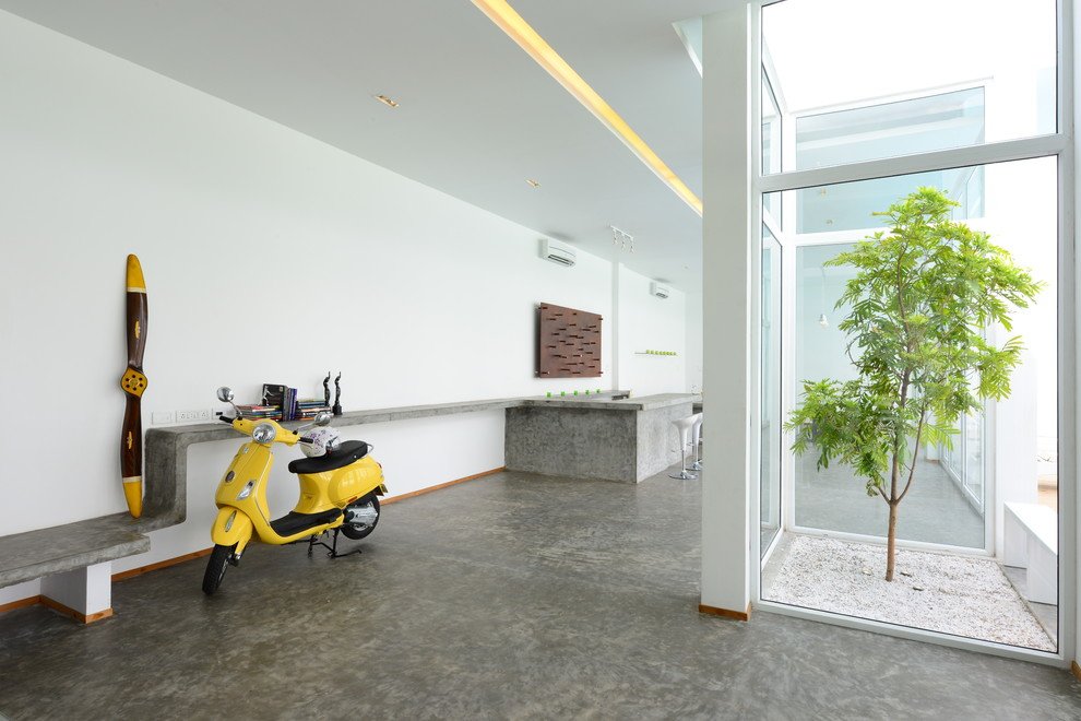 While details about specific furnishings remain private, glimpses into the house reveal a few intriguing design elements. A vibrant yellow Piaggio Vespa adds a touch of whimsy, while abstract paintings and a repurposed aircraft propeller hint at the homeowner’s personality. These unique pieces, reportedly sourced from Mumbai’s Mutton Street, reflect a playful and artistic approach to decor.