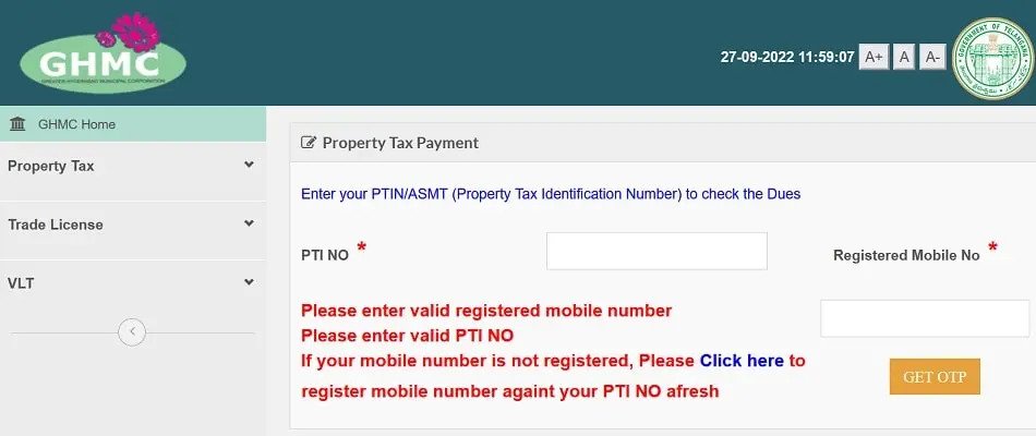 banking. - Enter your PTIN to get the GHMC property tax receipt.