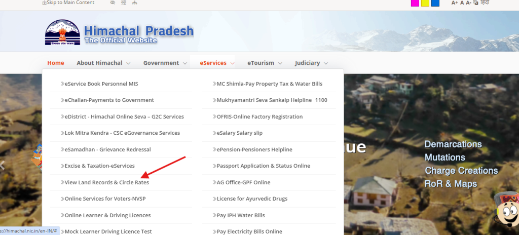 Visit the official website https://himachal.nic.in/ Under the e services option you can find the view land records option