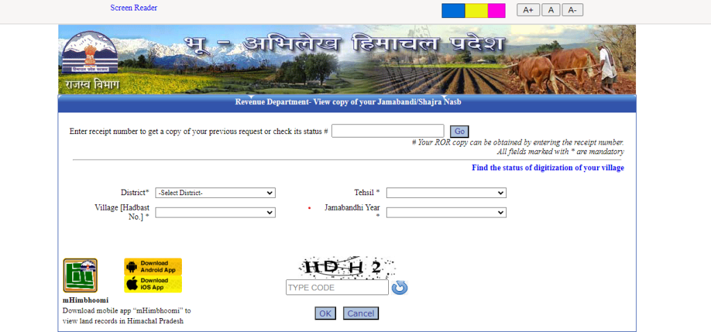 click on the option and you need to enter your details like district, tehsil, village, and year to check land records