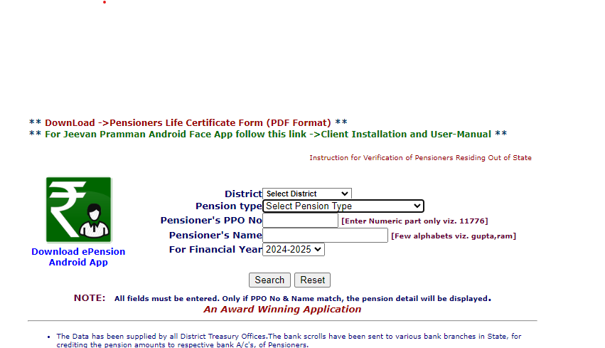 enter your district, pension type, name, and all the details, and then click on the search option.
