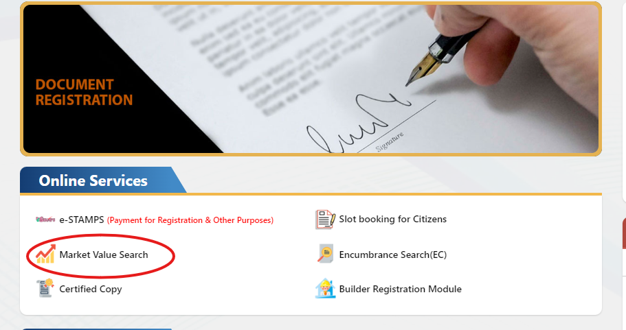 visit the official website https://registration.telangana.gov.in/, select the option ” Market value search “