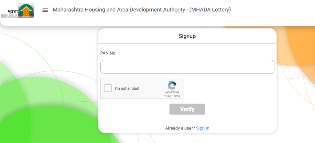 Go to housing.mhada.gov.in/signUp.