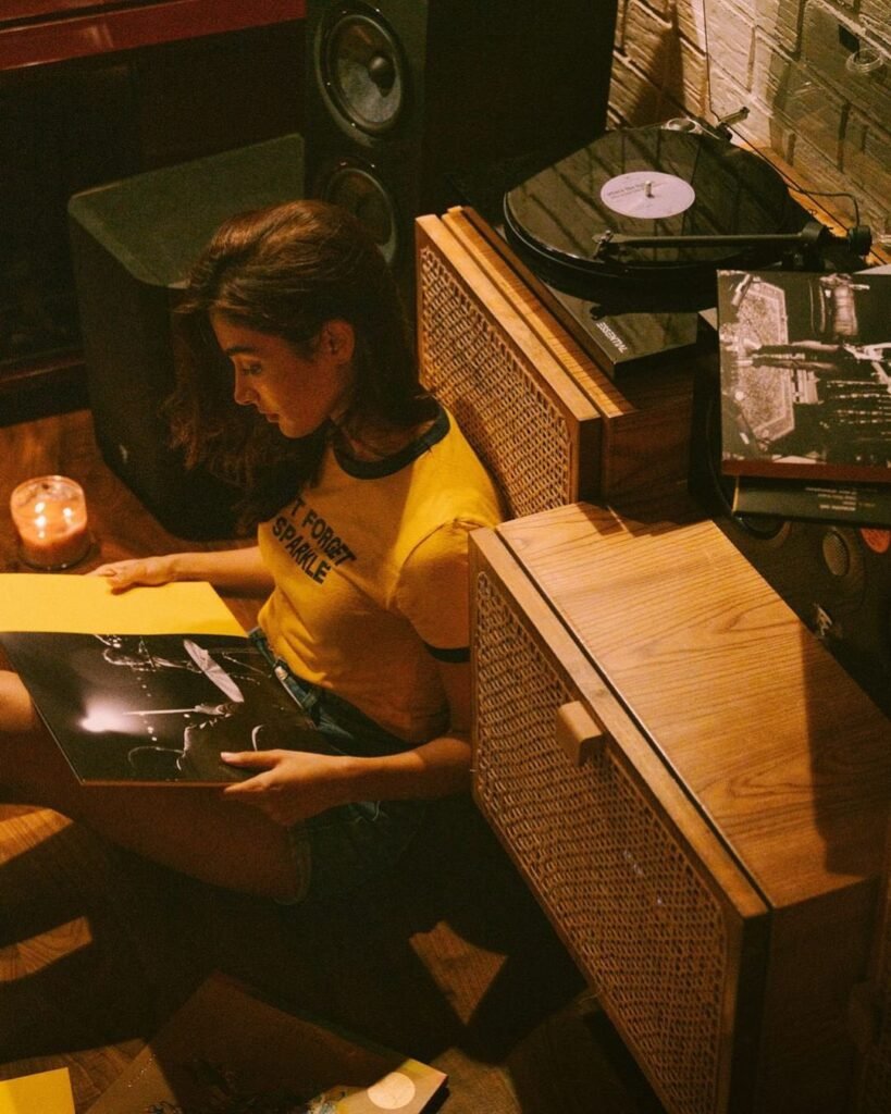 The relaxing area is often complemented by calming decor elements, such as a stylish rug and tasteful artwork, which contribute to a serene environment. Adding personal touches like scented candles or a small indoor water feature further enhances the sense of relaxation, creating a perfect nook for Pooja to rejuvenate and enjoy her personal time in utmost comfort.